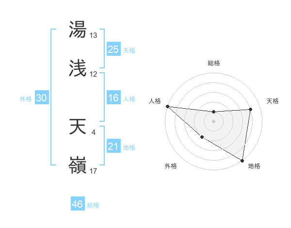 湯浅 天嶺さんを姓名の画数から五運を鑑定