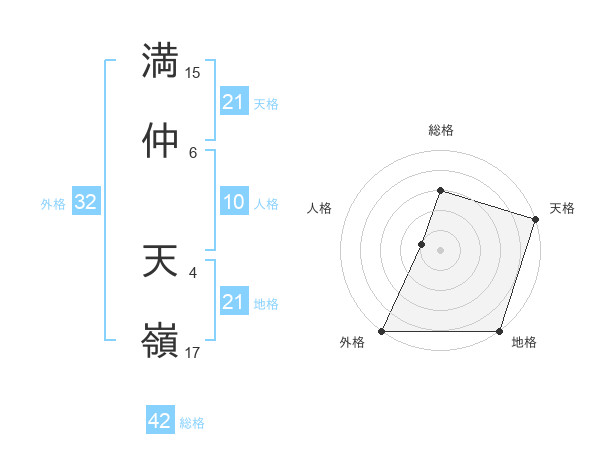 満仲 天嶺さんの天格は21画の5点!