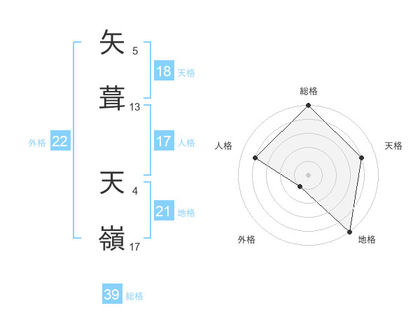 矢葺 天嶺さんを姓名の画数から五運を鑑定