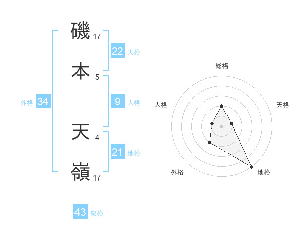 磯本 天嶺さんの地格は21画の5点!