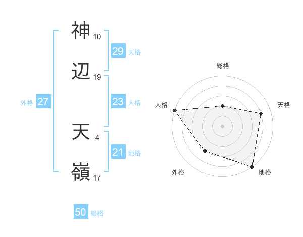 神辺 天嶺さんの総格は50画の2点!