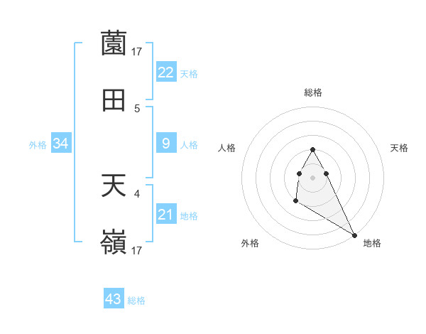 薗田 天嶺さんの地格は21画の5点!