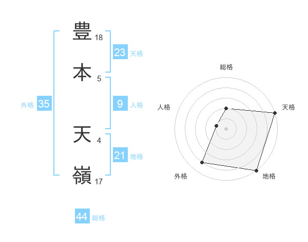 豊本 天嶺さんの天格は23画の5点!