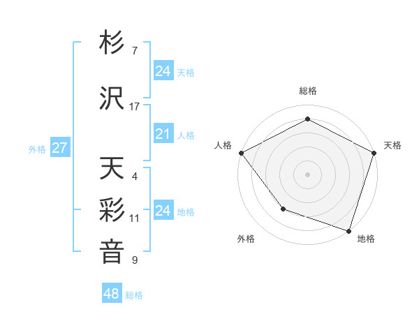 杉沢 天彩音さんを姓名の画数から五運を鑑定