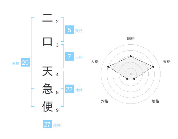 二口 天急便さんの地格は22画の1点!