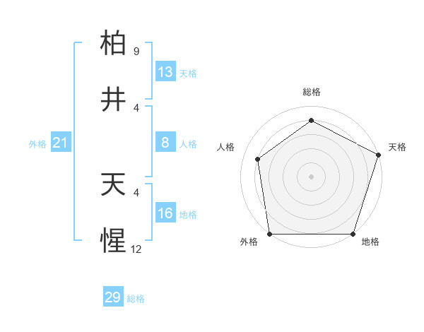柏井 天惺さんを姓名の画数から五運を鑑定