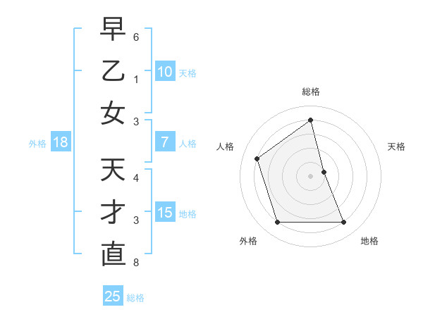 早乙女 天才直さんを姓名の画数から五運を鑑定