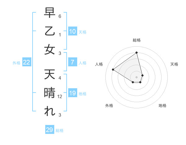 早乙女 天晴れさんを姓名の画数から五運を鑑定