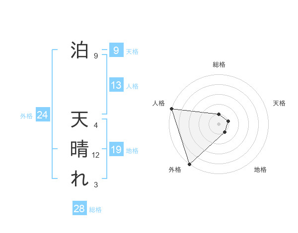泊 天晴れさんを姓名の画数から五運を鑑定