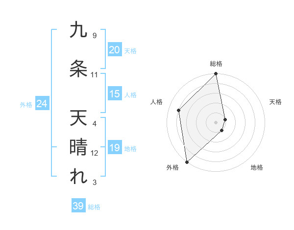 九条 天晴れさんを姓名の画数から五運を鑑定