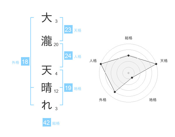 大瀧 天晴れさんを姓名の画数から五運を鑑定