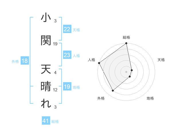 小関 天晴れさんの天格は22画の1点!