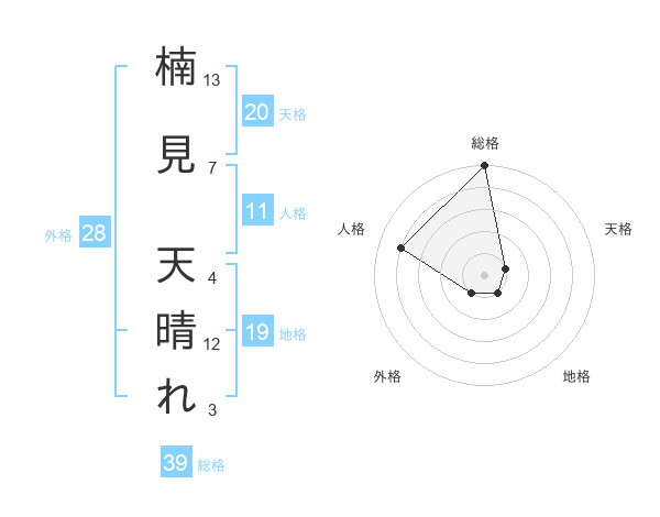 楠見 天晴れさんの天格は20画の1点!