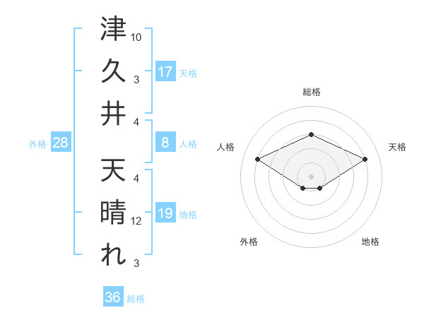 津久井 天晴れさんを姓名の画数から五運を鑑定