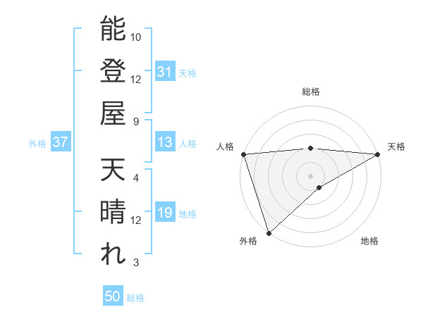 能登屋 天晴れさんを姓名の画数から五運を鑑定