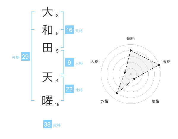 大和田 天曜さんを姓名の画数から五運を鑑定