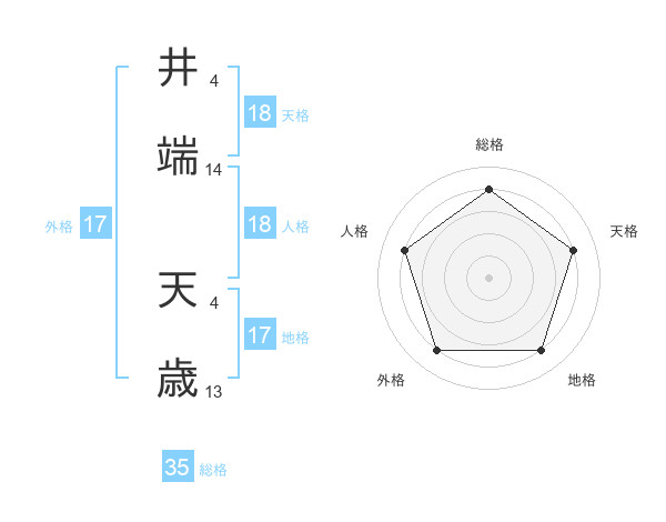 井端 天歳さんを姓名の画数から五運を鑑定