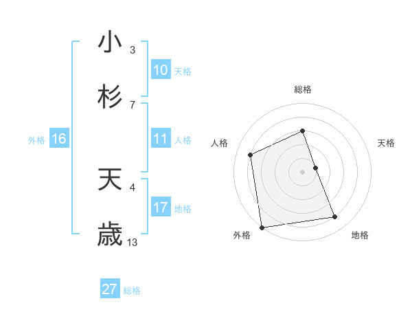 小杉 天歳さんを姓名の画数から五運を鑑定