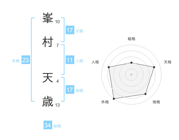 峯村 天歳さんの天格は17画の4点!