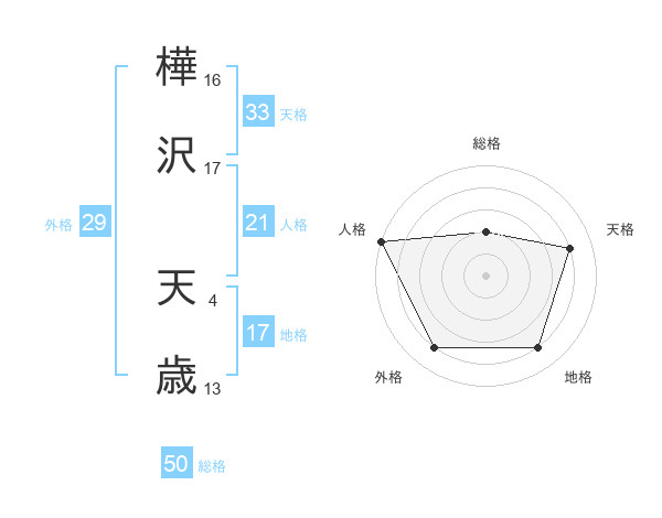 樺沢 天歳さんを姓名の画数から五運を鑑定
