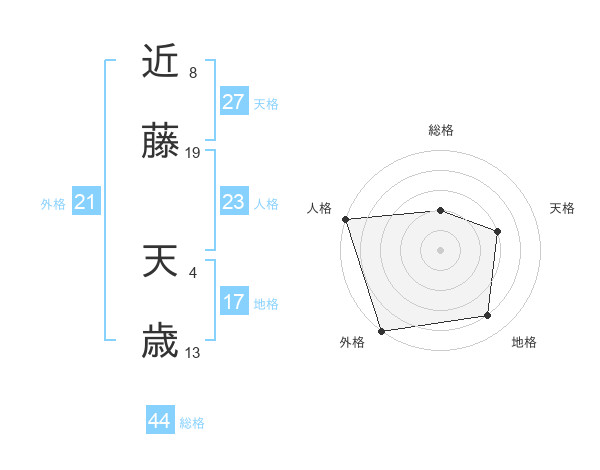近藤 天歳さんを姓名の画数から五運を鑑定