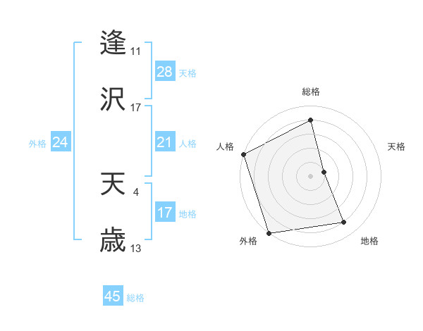 逢沢 天歳さんの外格は24画の5点!