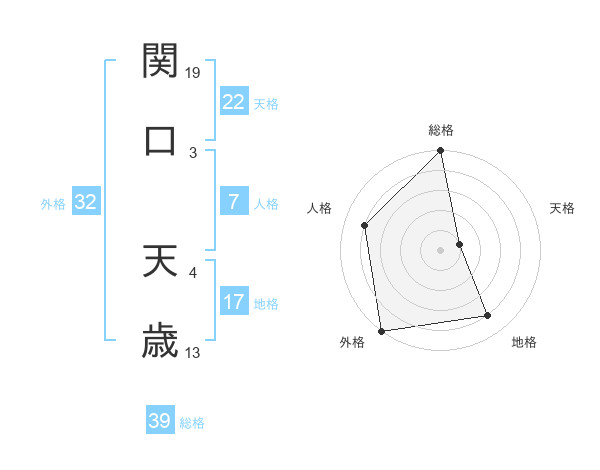 関口 天歳さんの総格は39画の5点!
