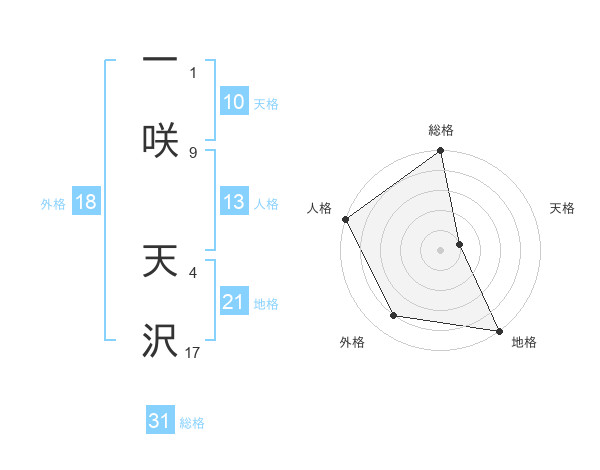 一咲 天沢さんを姓名の画数から五運を鑑定