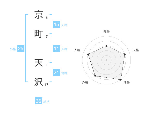京町 天沢さんの地格は21画の5点!