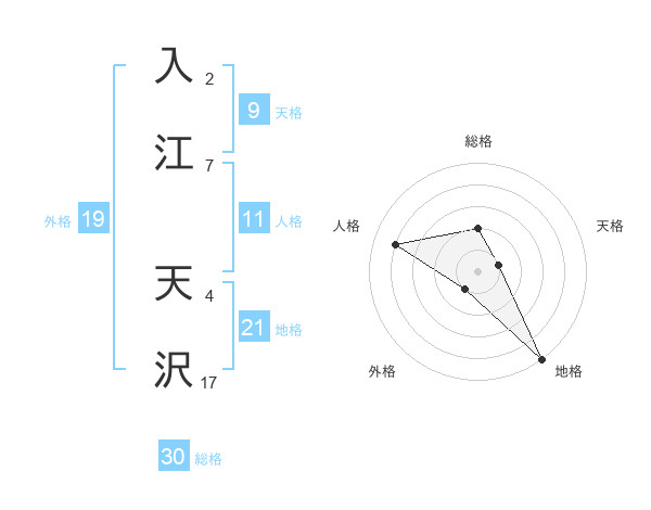 入江 天沢さんの総格は30画の2点!