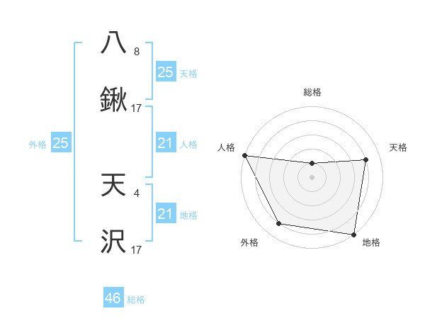 八鍬 天沢さんの天格は25画の4点!