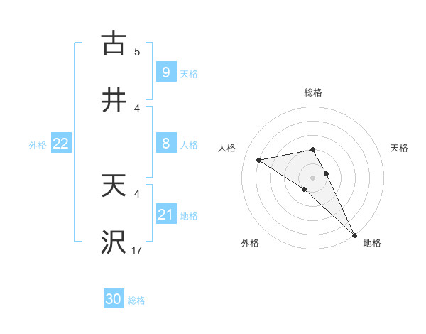 古井 天沢さんの総格は30画の2点!