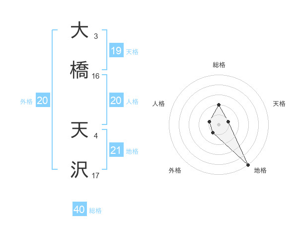 大橋 天沢さんを姓名の画数から五運を鑑定