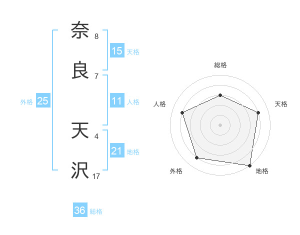 奈良 天沢さんの地格は21画の5点!