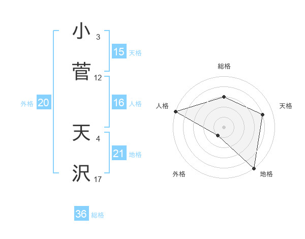 小菅 天沢さんの天格は15画の4点!