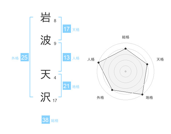 岩波 天沢さんの総格は38画の4点!