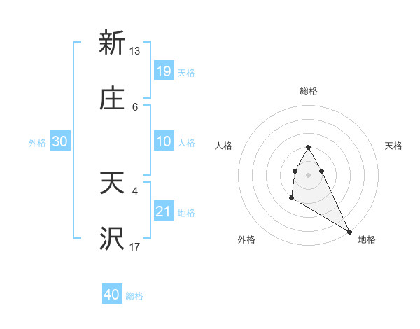 新庄 天沢さんを姓名の画数から五運を鑑定