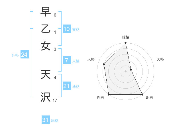 早乙女 天沢さんを姓名の画数から五運を鑑定