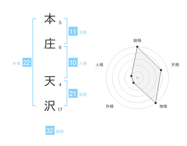 本庄 天沢さんの総格は32画の5点!