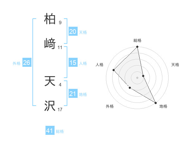 柏﨑 天沢さんの総格は41画の5点!