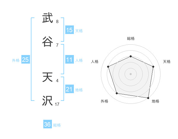 武谷 天沢さんを姓名の画数から五運を鑑定