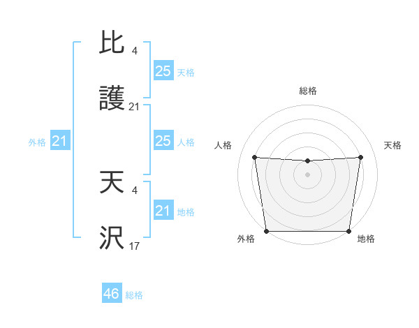 比護 天沢さんの天格は25画の4点!