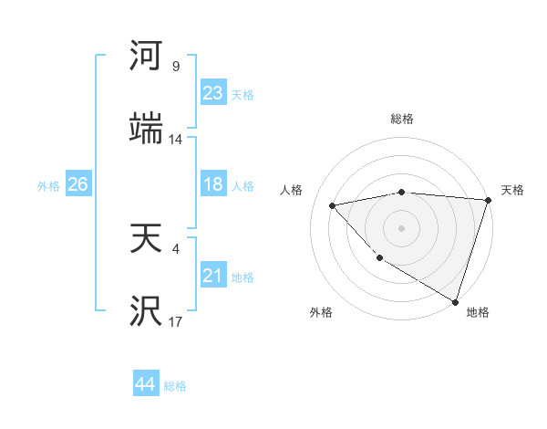 河端 天沢さんの総格は44画の2点!
