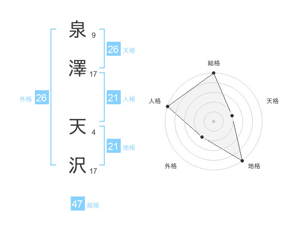 泉澤 天沢さんの総格は47画の5点!