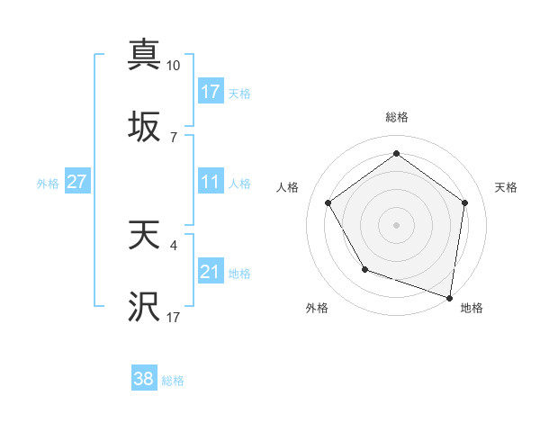 真坂 天沢さんを姓名の画数から五運を鑑定