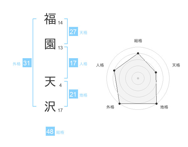 福園 天沢さんの外格は31画の5点!