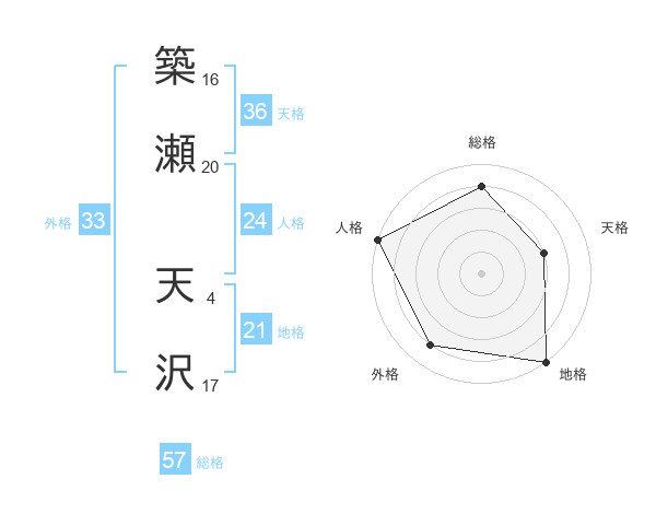 築瀬 天沢さんを姓名の画数から五運を鑑定