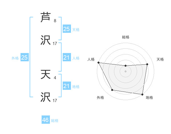 芦沢 天沢さんを姓名の画数から五運を鑑定