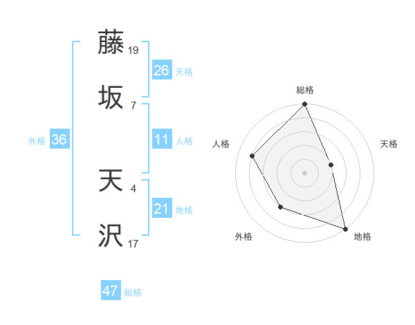 藤坂 天沢さんを姓名の画数から五運を鑑定