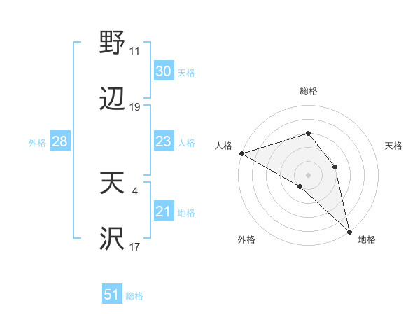 野辺 天沢さんの総格は51画の3点!